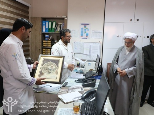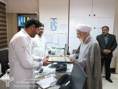 به گزارش روابط عمومی مرکز آموزشی، پژوهشی و درمانی علامه بهلول گنابادی، حجت الاسلام حسن صادقی نسب امام جمعه و مسئول دفتر نمایندگی ولی فقیه در دانشگاه علوم پزشکی گناباد در ابتدای حضور خود در بیمارستان علامه بهلول گنابادی به مقام والای شهید مدافع سلامت گناباد، شهید سید عباس سجادی ادای احترام و سپس با حضور در دفتر خدمات پرستاری بیمارستان با اهدای لوح نفیس روز پرستار را به نمایندگی از تمامی پرستاران شاغل در این بیمارستان به سورپروایزان بالینی تبریک گفت و از زحمات شبانه روزی آنان برای سلامت مردم و بیماران قدردانی کرد.